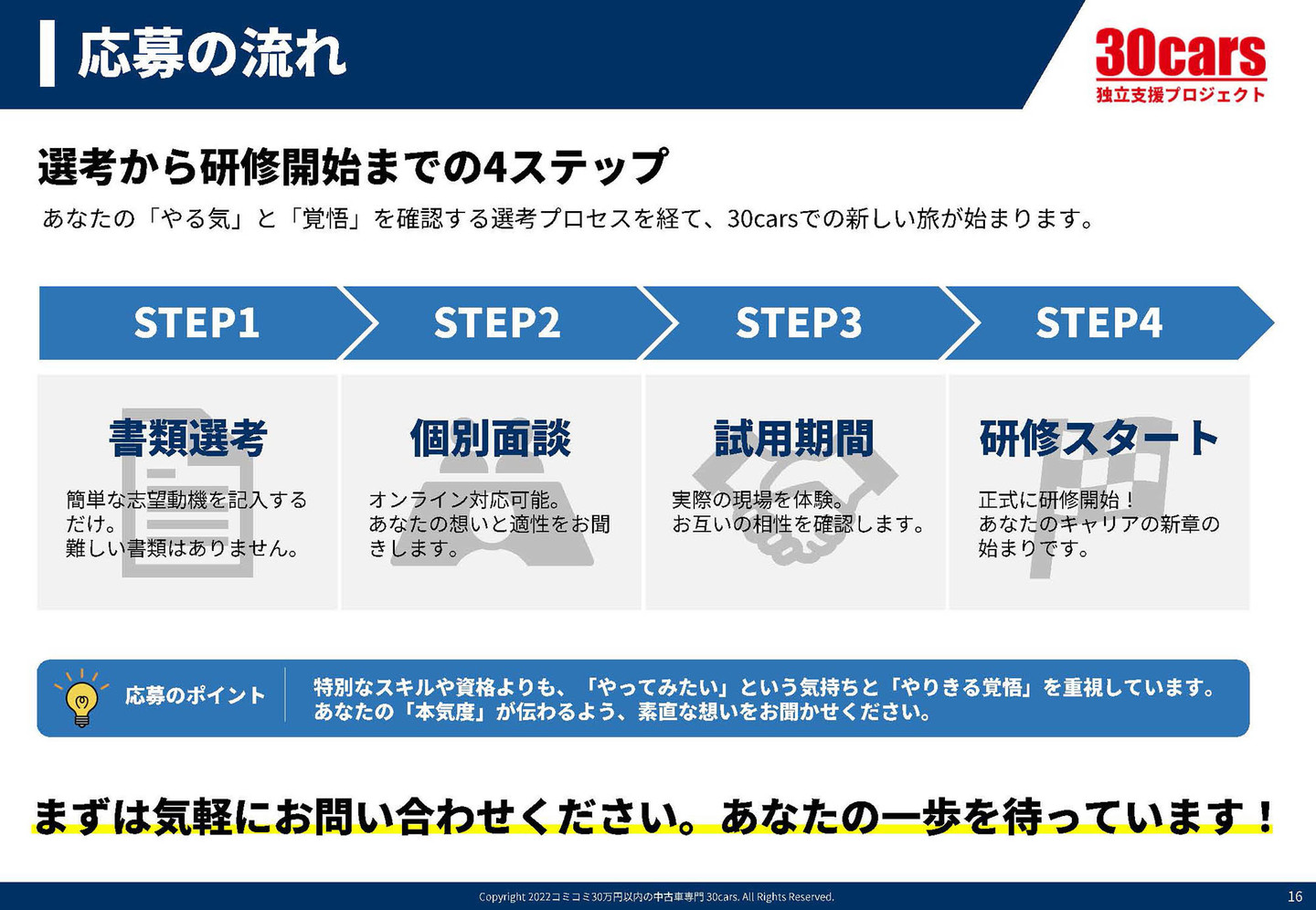 上記資料のダウンロードはこちら お問い合わせは、下記TELまたは、 お問い合わせフォームでお願いいたします。 0120-597-896 受付10:00~19:00 不定休 お問い合わせフォーム ▶︎ ※勧誘・セールスの営業電話は固くお断りしております。 求人情報 ▶︎ 30cars在庫中古車の最新情報をコチラで確認できます。 どうぞお友達追加をよろしくお願いいたします。 スマホはこちらから▶︎